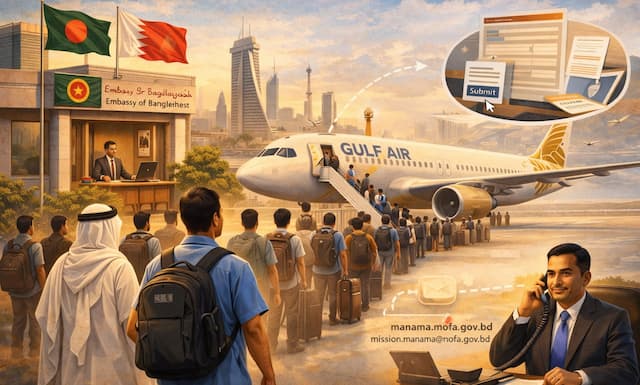 মধ্যপ্রাচ্যের দেশ বাহরাইনে বসবাসরত প্রবাসী বাংলাদেশি যারা যুদ্ধ পরিস্থিতির কারণে দেশে ফিরতে আগ্রহী তাদের জন্য বিশেষ উদ্যোগ নিয়েছে দেশটিতে নিয়োজিত বাংলাদেশ দূতাবাস। এক বার্তায় দূতাবাস এ তথ্য জানিয়েছে।