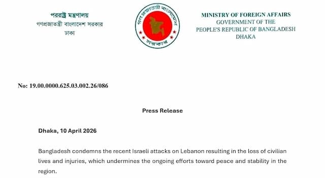 পররাষ্ট্র মন্ত্রণালয়ের দেওয়া এক সংবাদ বিজ্ঞপ্তিতে লেবাননে ইসরায়েলি হামলার নিন্দা জানিয়ে বলা হয়, এসব হামলা এ অঞ্চলে শান্তি ও স্থিতিশীলতা প্রতিষ্ঠার চলমান প্রচেষ্টাকে ব্যাহত করছে।