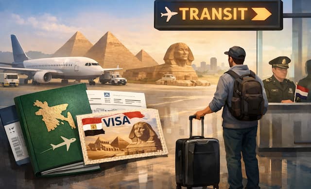 বাংলাদেশি নাগরিকদের মিসরে ট্রানজিটের ক্ষেত্রে ঢাকা থেকেই আগাম ভিসা নেওয়া বাধ্যতামূলক করেছে দেশটি। গতকাল সোমবার (৩০ মার্চ) দূতাবাসের এক বিজ্ঞপ্তিতে এ তথ্য জানানো হয়।
