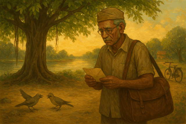 তার কাঁধে চিঠির ঝোলা। মনের মধ্যে নানান কথা—‘৩০ বছর ধরে চিঠি বিলি করলাম। কত মুখ, কত কান্না, কত আশা। কিন্তু... আমার নিজের কথাগুলো কখনো কেউ পড়েনি। অন্যের খবর, আশা, অভিমান, প্রেম... সবই ছিল অন্যের। আমার কিছু ছিল না। আগামী পরশু চাকরিতে শেষ দিন... আর আমার নিজের শুরু।’