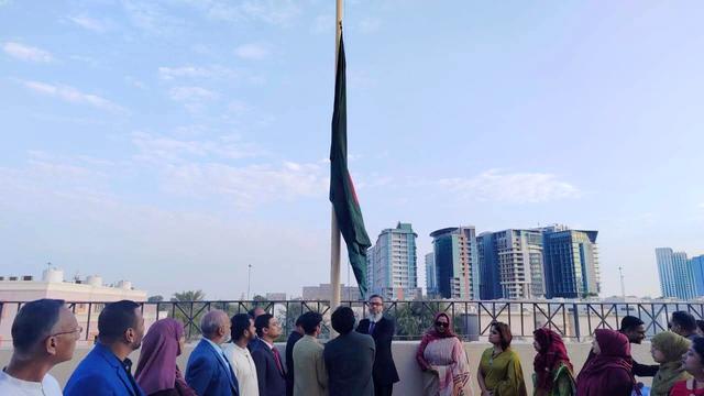 দূতাবাসে অডিটোরিয়ামে আয়োজিত অনুষ্ঠানে রাষ্ট্রপতি, প্রধান উপদেষ্টা ও পররাষ্ট্র উপদেষ্টার বাণী পাঠ করা হয়। রাষ্ট্রপতির বাণী পাঠ করেন দূতাবাসের মিশন উপ প্রধান শাহনাজ আক্তার রানু। প্রধান উপদেষ্টার বাণী পাঠ করেন লেবার কাউন্সিলর মোহাম্মদ উল্লাহ খান এবং পররাষ্ট্র উপদেষ্টার বাণী পাঠ করেন প্রথম সচিব (পাসপোর্ট ও ভিসা) রুবাইয়া আফরোজ।
