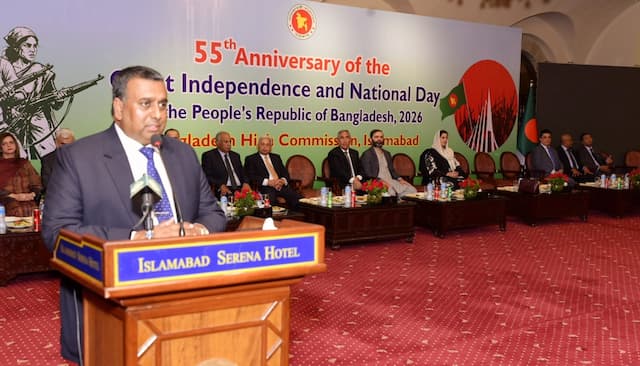 বাংলাদেশের মহান স্বাধীনতা ও জাতীয় দিবস উপলক্ষে পাকিস্তানের রাজধানী ইসলামাবাদে বর্ণাঢ্য কূটনৈতিক অভ্যর্থনা ও নৈশভোজ অনুষ্ঠিত হয়েছে। গতকাল মঙ্গলবার (৩১ মার্চ) স্থানীয় সময় সন্ধ্যায় ইসলামাবাদের সেরেনা হোটেলের শীষমহল বলরুমে এই অভ্যর্থনা ও নৈশভোজের আয়োজন করা হয়। পাকিস্তানে নিযুক্ত বাংলাদেশের হাইকমিশনার মো. ইকবাল হোসেন খান ও তার সহধর্মিনী নাহিদ রওশন এবং হাইকমিশনের কর্মকর্তারা অতিথিদের অভ্যর্থনা জানান।