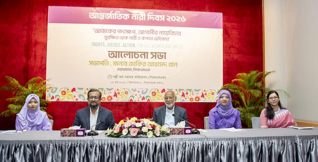 ‘আজকের পদক্ষেপ, আগামীর ন্যায়বিচার, সুরক্ষিত হোক নারী ও কন্যার অধিকার’—এ প্রতিপাদ্যকে সামনে রেখে পল্লী কর্ম-সহায়ক ফাউন্ডেশনে (পিকেএসএফ) আন্তর্জাতিক নারী দিবস ২০২৬ উদ্যাপিত হয়েছে।