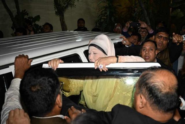 এদিকে বিকেল থেকেই খালেদা জিয়ার গুলশানের বাসভবনের সামনে দলের নেতাকর্মীরা ভিড় করতে শুরু করেন।