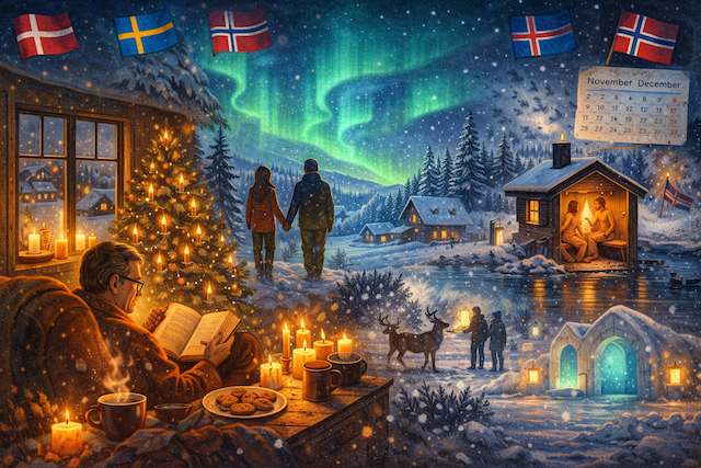 ডেনমার্ক, সুইডেন, নরওয়ে, ফিনল্যান্ড ও আইসল্যান্ড পৃথিবীতে উন্নয়ন, গণতন্ত্র ও মানবিক রাষ্ট্রব্যবস্থার প্রতীক হিসেবে পরিচিত। নর্ডিক এই দেশগুলো নভেম্বর ও ডিসেম্বর মাসে এক ভিন্ন বাস্তবতায় প্রবেশ করে। এই সময় প্রকৃতি, সমাজ ও মানুষের মন একসঙ্গে পরিবর্তিত হয়।