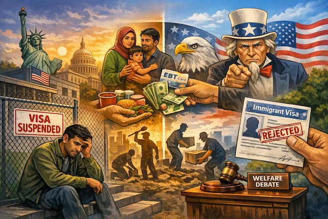 এই প্রেক্ষাপটে আমেরিকার পররাষ্ট্র দপ্তর এক্সে দেওয়া এক পোস্টে জানায়, যেসব দেশের অভিবাসীরা আমেরিকান জনগণের অর্থায়নে পরিচালিত কল্যাণ কর্মসূচির ওপর অগ্রহণযোগ্য মাত্রায় নির্ভরশীল, সেসব দেশের জন্য ইমিগ্র্যান্ট ভিসা প্রক্রিয়া স্থগিত থাকবে। আমেরিকা স্পষ্ট করে দিয়েছে, তারা আর এমন অভিবাসন চায় না, যারা কাজের মাধ্যমে অর্থনীতিতে অবদান না রেখে রাষ্ট্রীয় তহবিলের ওপর নির্ভরশীল হয়ে পড়ে।