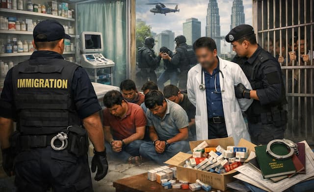 দুই সপ্তাহের নজরদারির পর ইমিগ্রেশন বিভাগের স্পেশাল ট্যাকটিক্যাল টিম এবং কুয়ালালামপুর স্বাস্থ্য বিভাগের ফার্মেসি এনফোর্সমেন্ট শাখার যৌথ অভিযানে এই অভিযান পরিচালিত হয়।