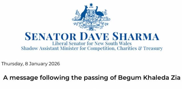 বাংলাদেশ জাতীয়তাবাদী দলের (বিএনপি) চেয়ারপারসন ও সাবেক প্রধানমন্ত্রী খালেদা জিয়ার মৃত্যুতে গভীর শোক ও দুঃখ প্রকাশ করেছেন অস্ট্রেলিয়ার বিভিন্ন পর্যায়ের বিরোধী দলীয় নেতৃবৃন্দ।