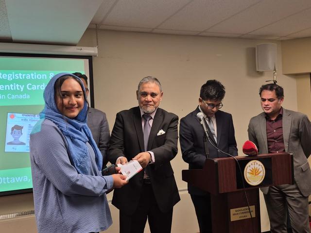 প্রধান নির্বাচন কমিশনার কানাডায় বসবাসরত কয়েকজন নিবন্ধিত বাংলাদেশি নাগরিকের হাতে স্মার্ট এনআইডি কার্ড তুলে দেন। যা কানাডায় এ সেবার আনুষ্ঠানিক সূচনাকে প্রতীকীভাবে তুলে ধরে।