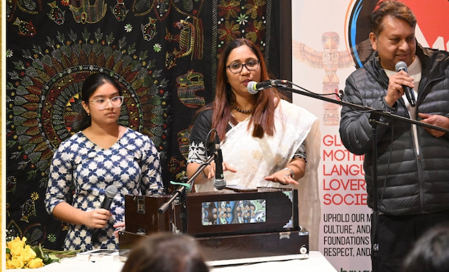 সংগীত পরিবেশন করেন তানিয়া ঘোষ, মোহর ঘোষ, মানন্যা চক্রবর্তী ও মাইকেল দীপায়ন মিত্র। তাদের অপূর্ব কণ্ঠমাধুর্যে উপস্থিত সবাই মোহিত হন। মানন্যা ও তানিয়ার সুললিত কণ্ঠে ‘মাতৃভাষা আমার প্রাণ, মাতৃভাষা আমার গান’ এবং মাইকেল দীপায়ন মিত্রের অনবদ্য কণ্ঠে ‘আমি বাংলায় গান গাই’, ও ‘আমার ভাইয়ের রক্তে রাঙানো একুশে ফেব্রুয়ারি’ এই কালজয়ী পরিবেশনায় সবাই কণ্ঠ দেন এবং দেশাত্মবোধের চেতনায় অভিভূত হয়ে পড়েন।